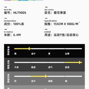 Với tính linh hoạt và độ bền cao, vải siêu nhẹ nhanh khô HLT9005 trở thành người bạn đồng hành đáng tin cậy cho mọi hoạt động ngoại trời. Cho dù bạn đang leo núi, đi bộ đường dài, hoặc tham gia các hoạt động thể thao như đạp xe hay yoga, vải siêu nhẹ nhanh khô này sẽ mang lại cảm giác thoải mái và tự tin cho bạn trong mọi tình huống.